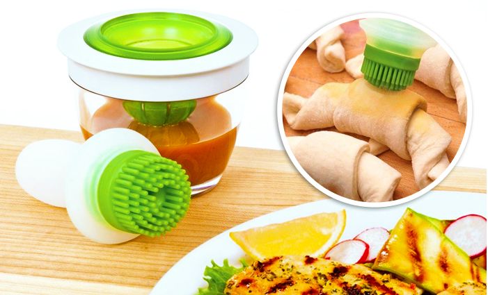 Sada na marinádu sa skladá zo sklenenej misky a silikónového štetca. Do maslovačky nasajete marinádu a potom už len ľahko nanesiete.
